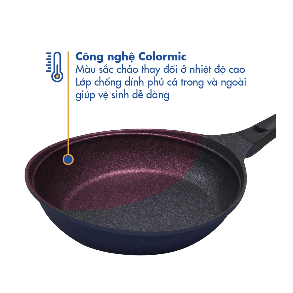 - Bên trong chảo được phủ lớp men chống dính CÔNG NGHỆ COLORMIC.Có thể sử dụng ít dầu khi nấu ăn, an toàn cho sức khỏe. Với độ bền cao, khả năng chịu nhiệt tốt, tiết kiệm được thời gian và nhiên liệu, hạn chế dầu, mỡ khi nấu ăn, an toàn cho sức khỏe.