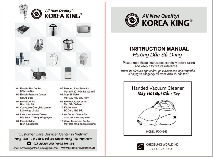 HDSD Máy hút bụi cầm tay Korea King PDG-666