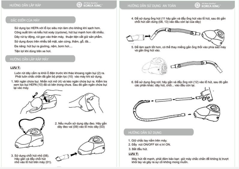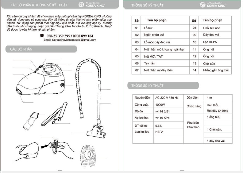 Hướng dẫn sử dụng chi tiết máy hút bụi cầm tay Korea King PDG-666