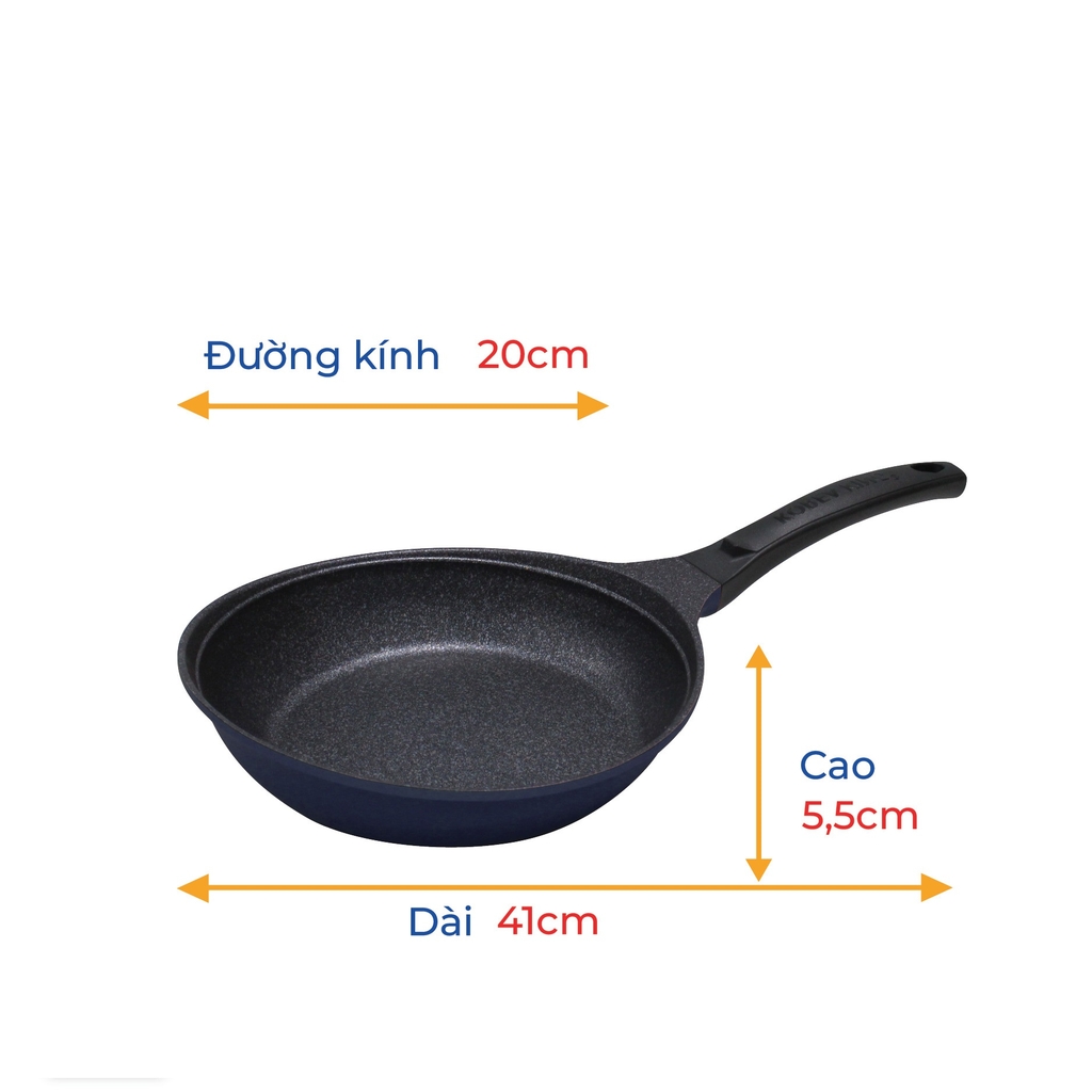 - Nhôm đúc nguyên khối với bên trong là lớp phủ đá K-marble (8 lớp) siêu bền tăng khả năng chống dính, bên ngoài phủ lớp sơn chống dính dễ dàng vệ sinh